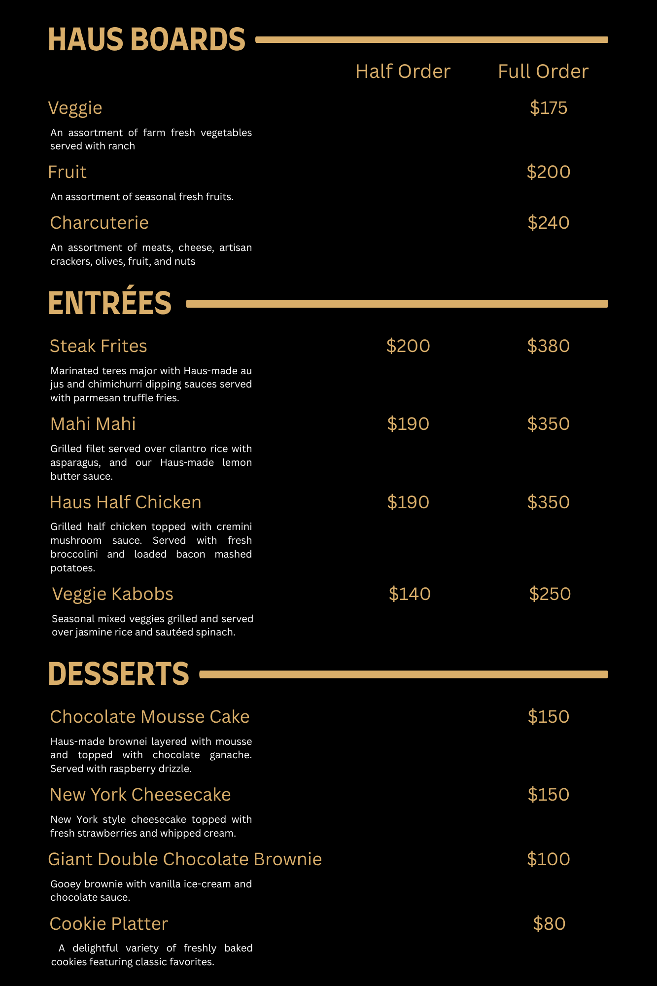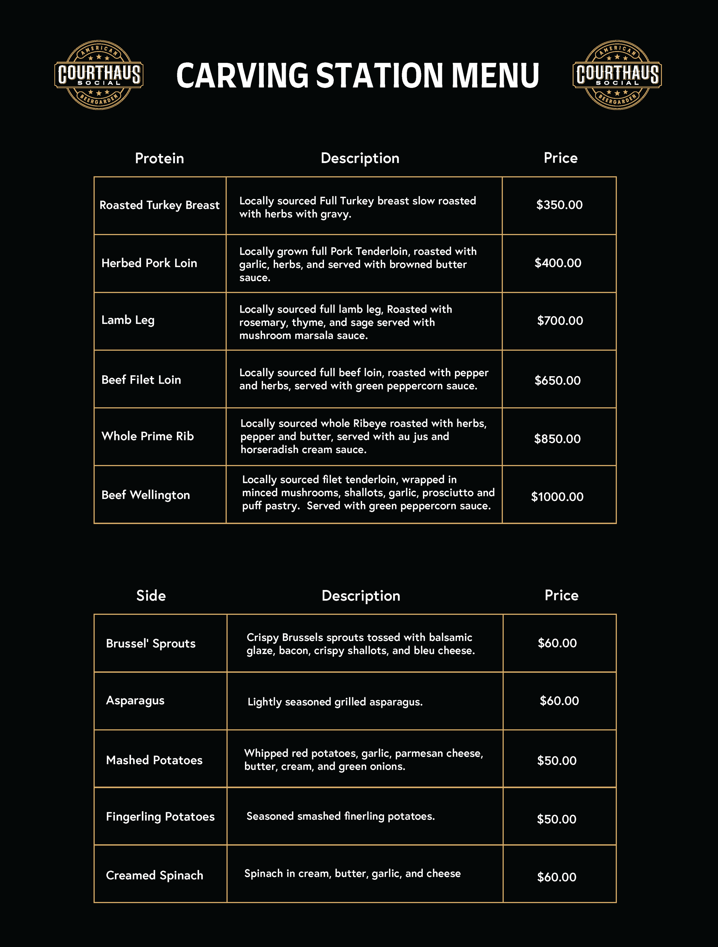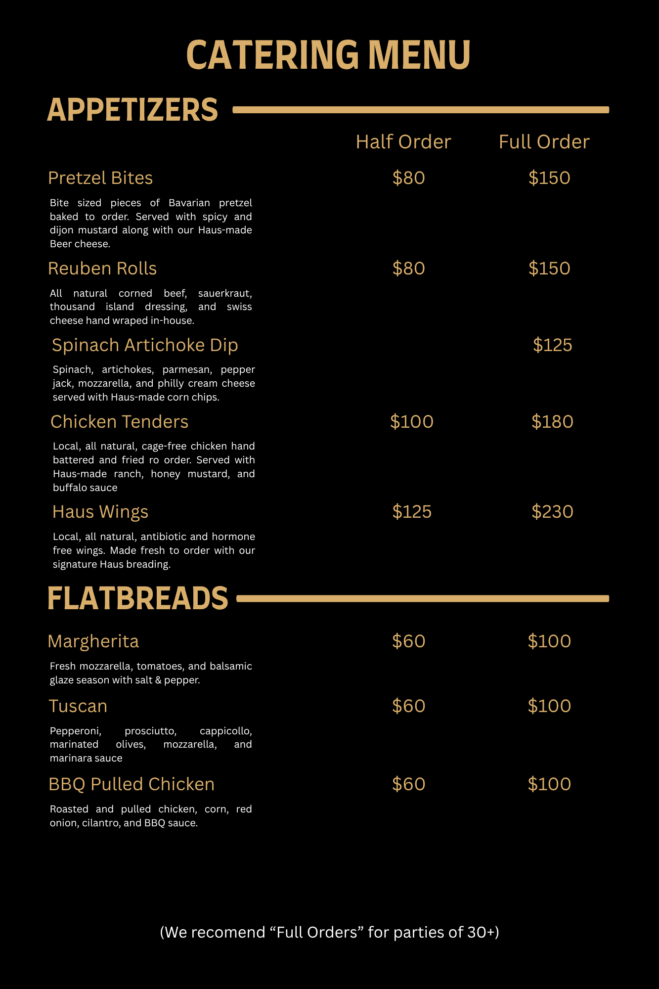 Catering Menu available for groups of 15 or more.