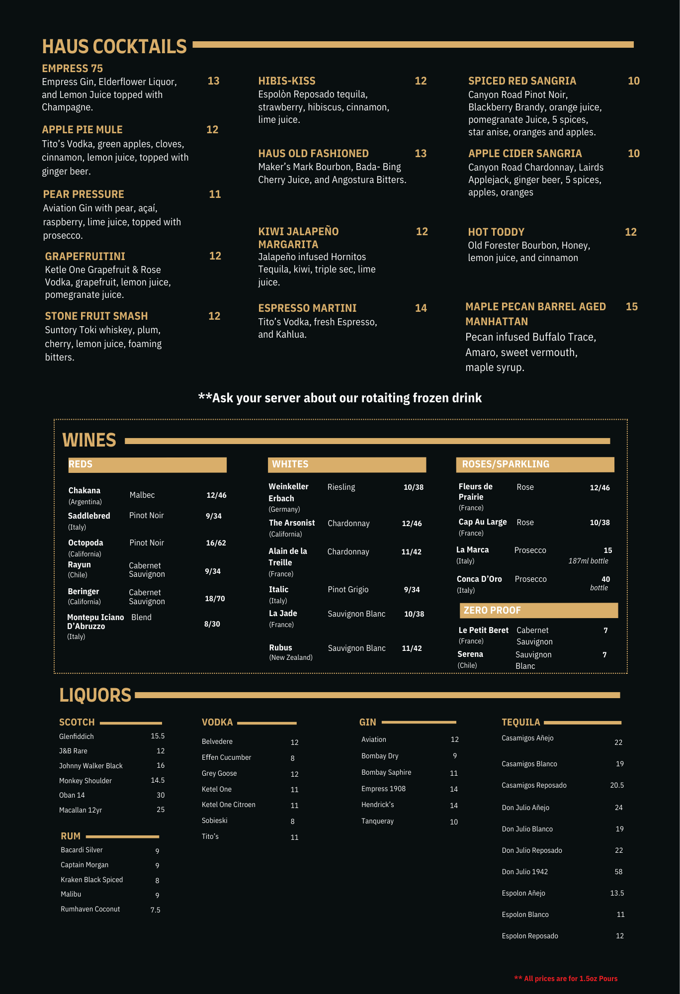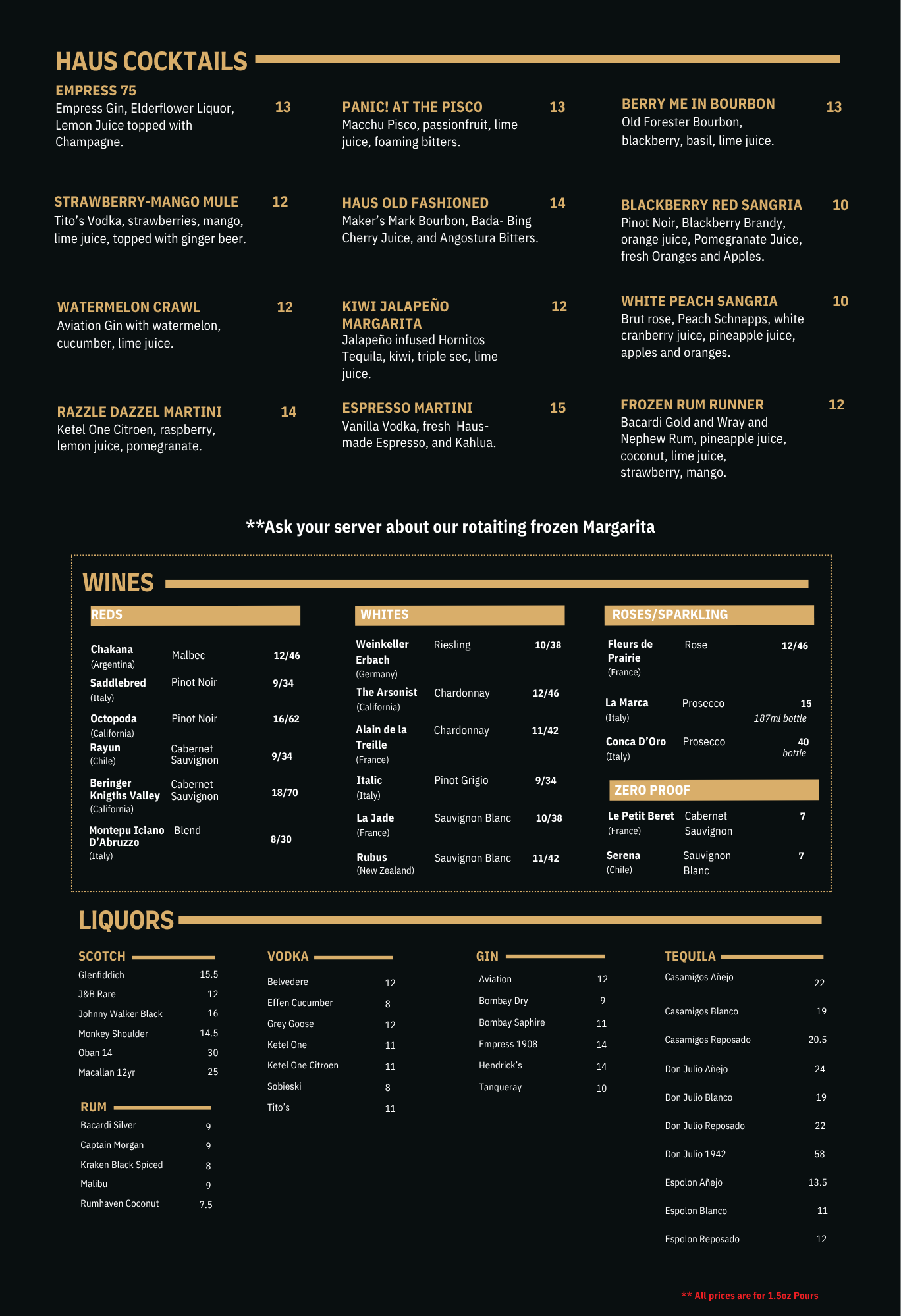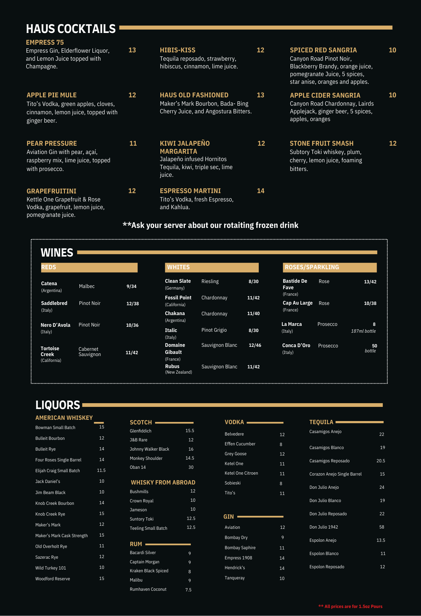 * Last call for alcohol & food is 15 minutes before closing *